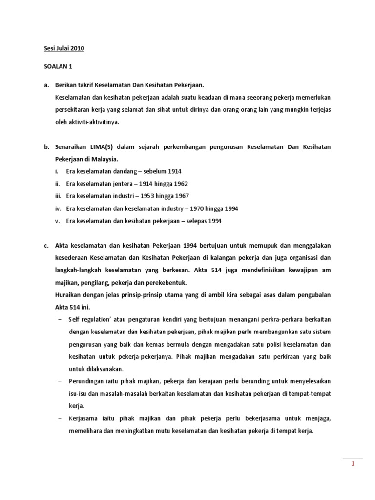 Psas Keselamatan Kesihatan Pekerjaan C1043 Soalan Final Tugasan 2 Pdf