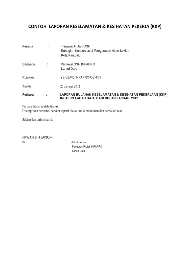 Contoh Surat Laporan Kemalangan Di Tempat Kerja Otosection